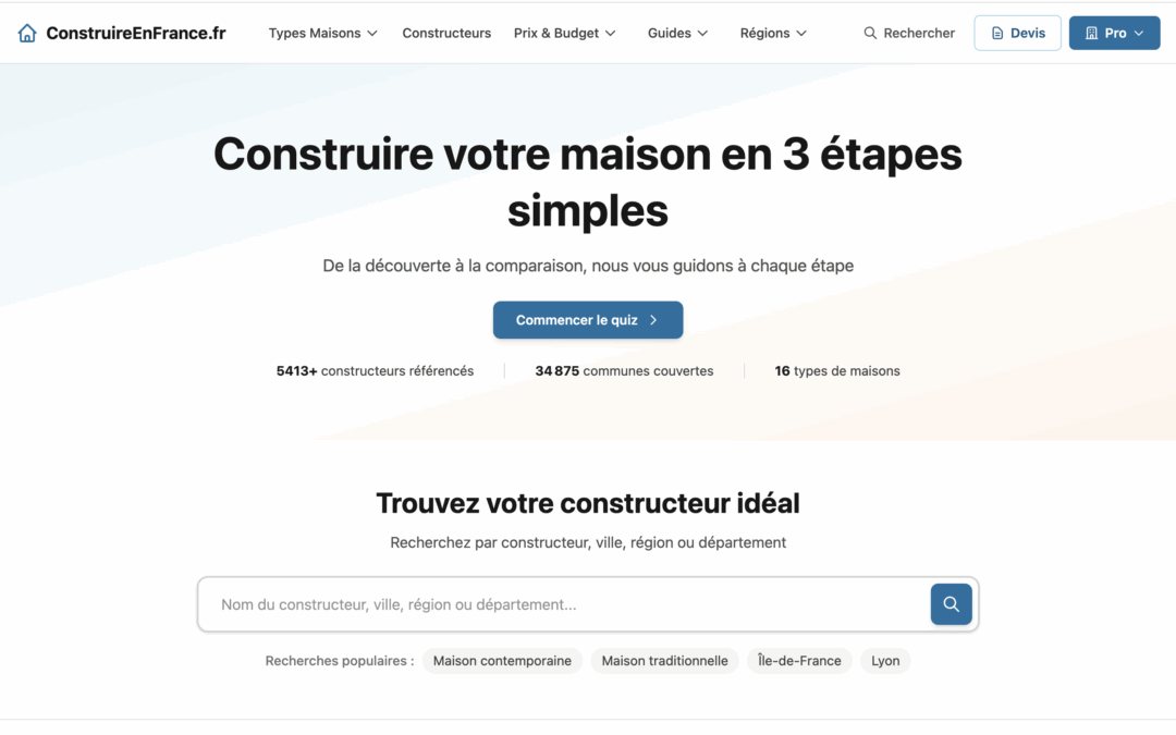 Avec des milliers de professionnels référencés sur tout le territoire, le site permet de trouver facilement un constructeur proche de chez vous,